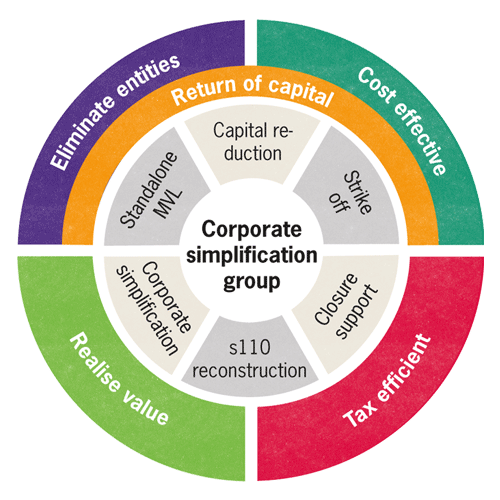 Having too many companies in your group structure can be expensive, and the changing financial reporting and regulatory landscape can lead to additional compliance work. Value may also be trapped deep within the corporate structure, restricting restructuring options and potentially leading to dividend blocks. These issues are increasingly leading clients to simplify their group structures. Through the provision of project management and technical support, our corporate simplification team has assisted dozens of clients to achieve their goal of a leaner and more efficient corporate structure in a tax efficient and cost effective way.